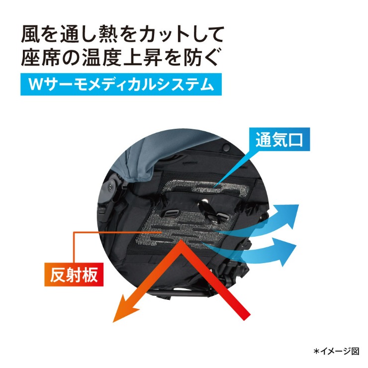 ・背面シートは風を通し熱をカットして座席の温度上昇を防ぐWサーモメディカルシステムを採用。