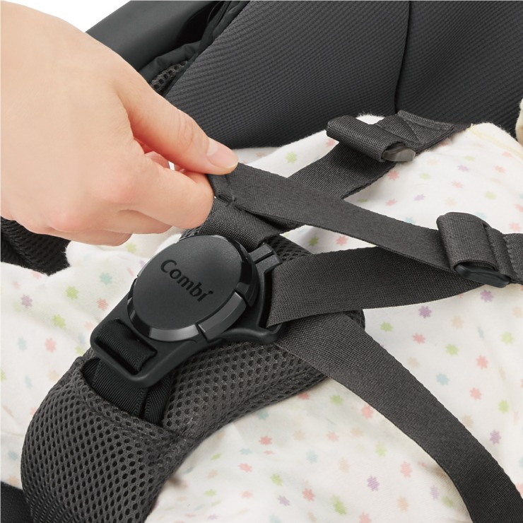 ●マグネットで簡単にベルト装着ができる、ラクピタバックルを搭載。バックルを近づけると、ピタッとくっつき、乗せ降ろしがもっとラクに!さらに、ベルトを引っ張るだけで、肩・腰ベルトがまとめて締まり、サッと調整できます。