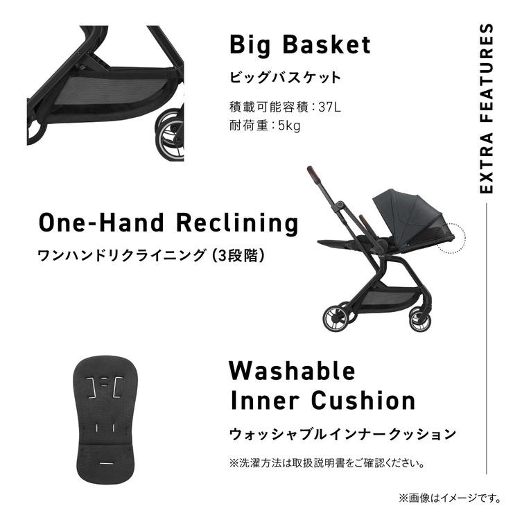 頭部はもちろん、インナークッションの全面に超・衝撃吸収素材を搭載し、赤ちゃんを振動のストレスから守ります。