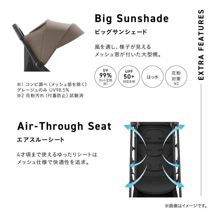 ・エアスルーシート:4才頃まで使えるゆったりシートはメッシュ仕様で快適性を追求。