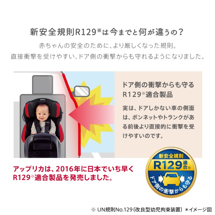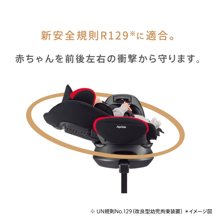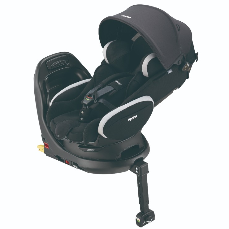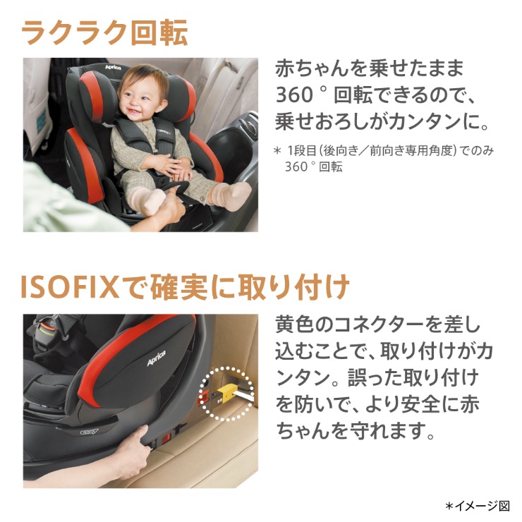 アップリカ独自の「平ら」なベッド。新生児から使える回転式チャイルドシート。