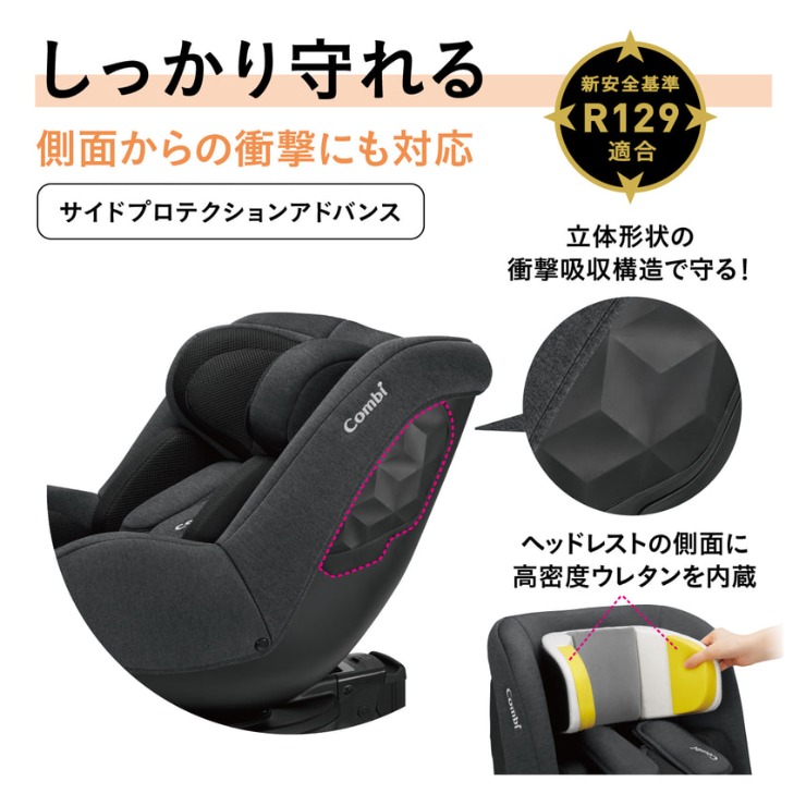 回転コンパクトチャイルドシートとして人気のクルムーヴシリーズ「R129」適合モデル。