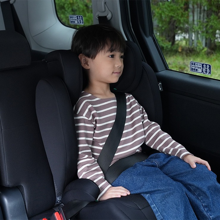 ジュニアシートモード:約15Kg~36Kg ●ヘッドサポートと肩ベルトが連動して12段階の高さ調節が可能