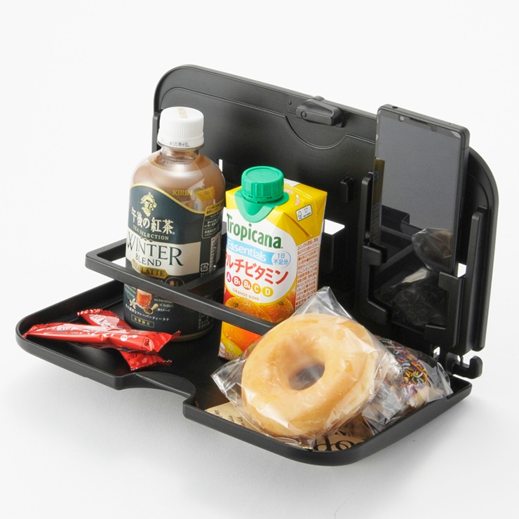 ドリンクホルダーを収納するとフラットなトレイとしてご使用できます。