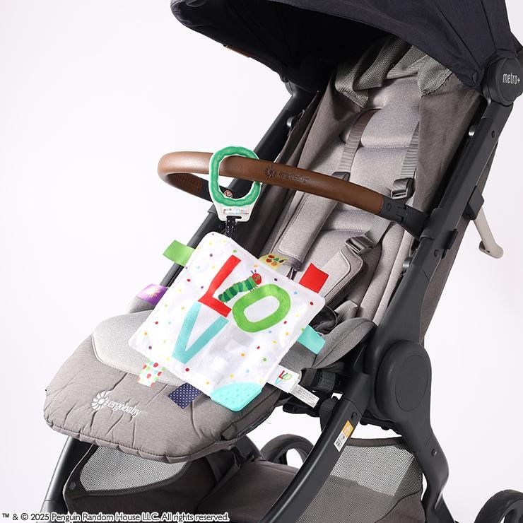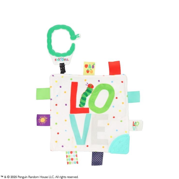 周りについたたくさんのタグは、見て・さわって楽しく遊べます。
