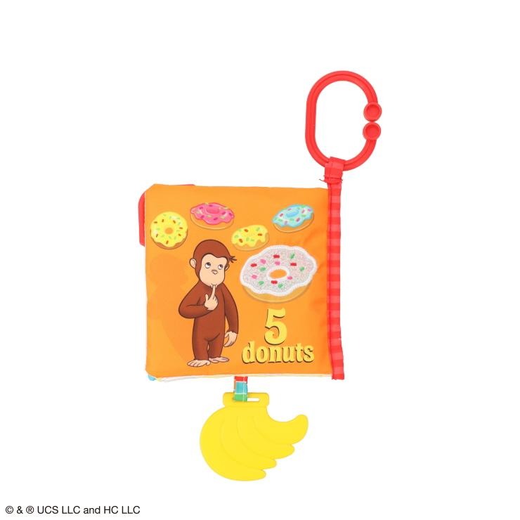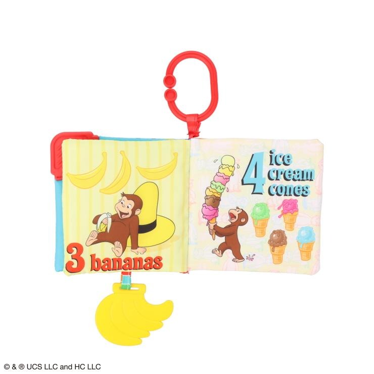 カラフルでかわいいジョージと仲間たちのイラストで、数字や英語を覚えよう!ページをめくると赤ちゃんの大好きなカサカサする音がします。バナナの形の歯固め付き。