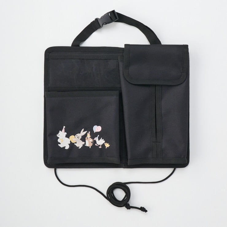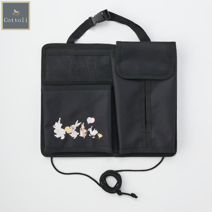 飲み物・お菓子・日常小物を入れるポケットや、ティッシュポケットなどで