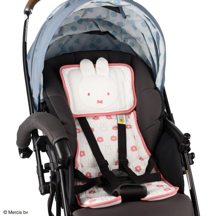 ミッフィーの総柄と花柄がかわいいベビーカーシートです。