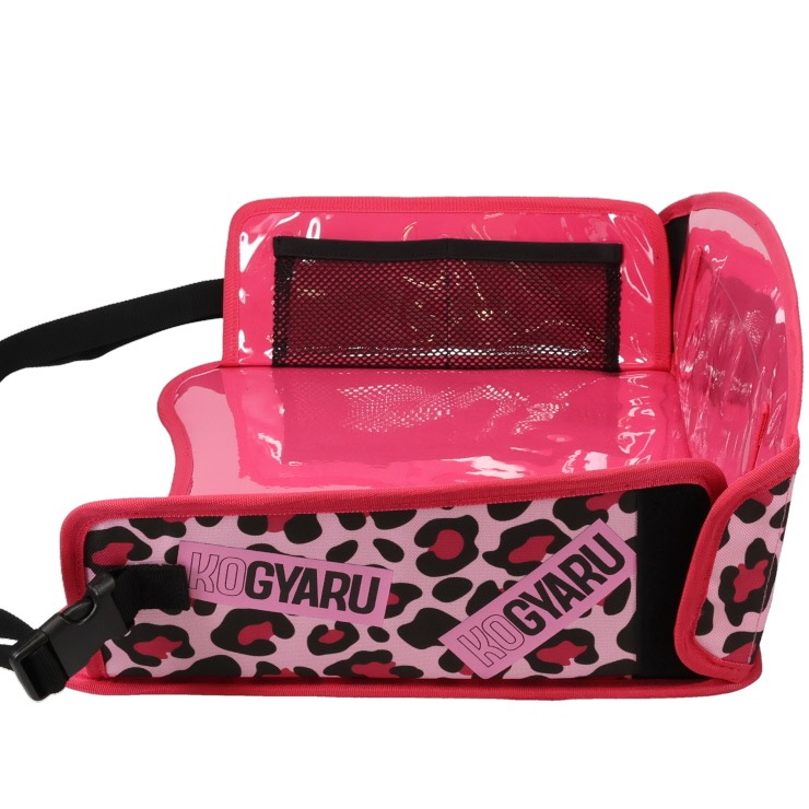 キッズがお出かけ中に楽しめるキッズテーブルです ベビーカー、チャイルドシートなに装着し使用できます KOGYARUらしくヒョウ柄、ゼブラ柄をアクセントにし可愛らしいキッズテーブルが完成しました ドリンクホルダー メッシュポケット モバイルポケットなど便利なテーブルになっています