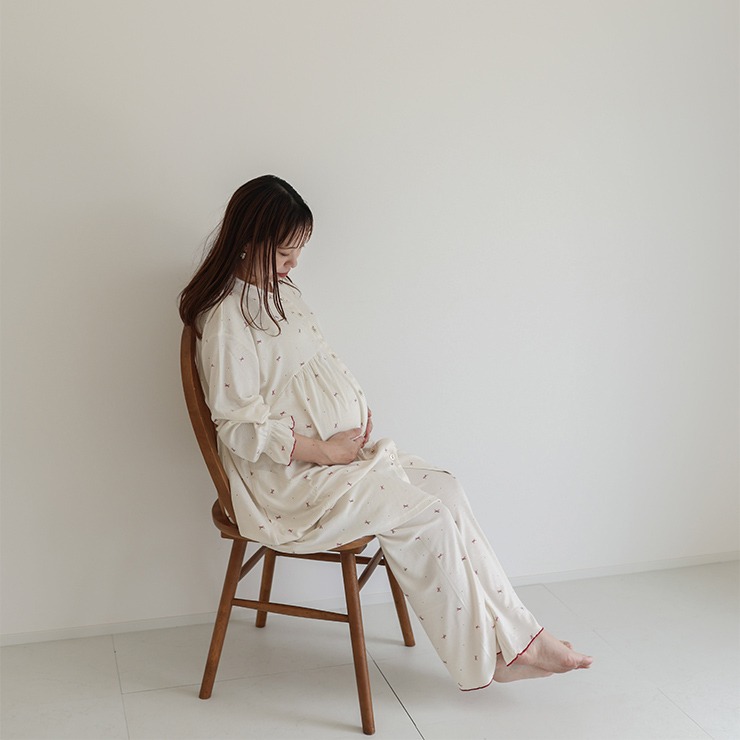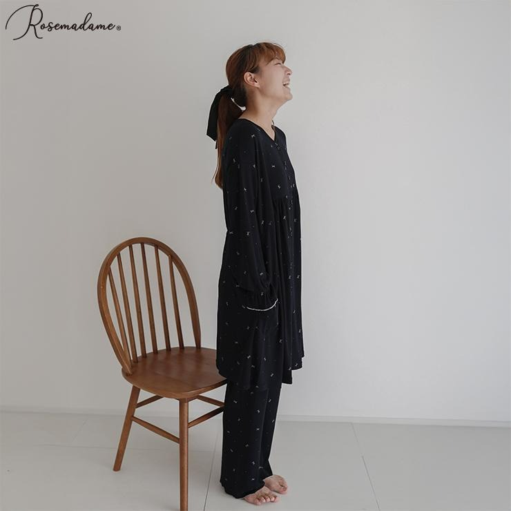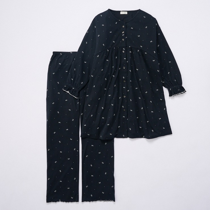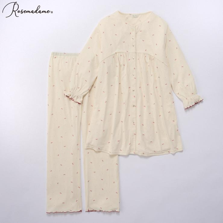 Rosemadame からこんなの欲しかった! 先輩ママ達のアイデアをカタチにしたリボン柄の長袖パジャマが登場です。柔らかい風合いの素材でストレッチ性もあります。