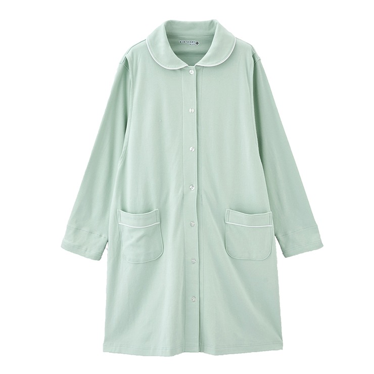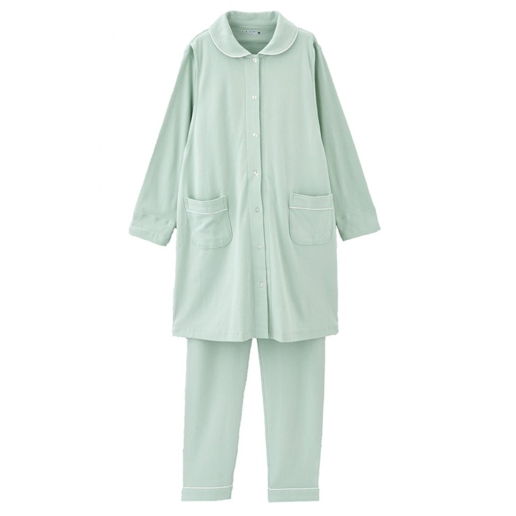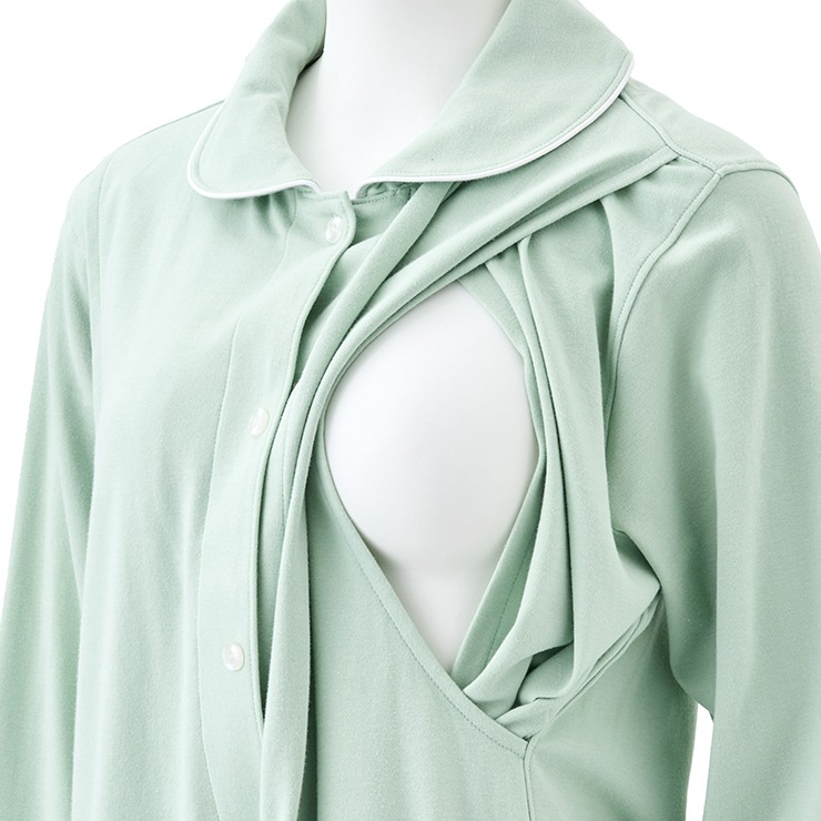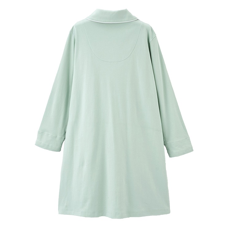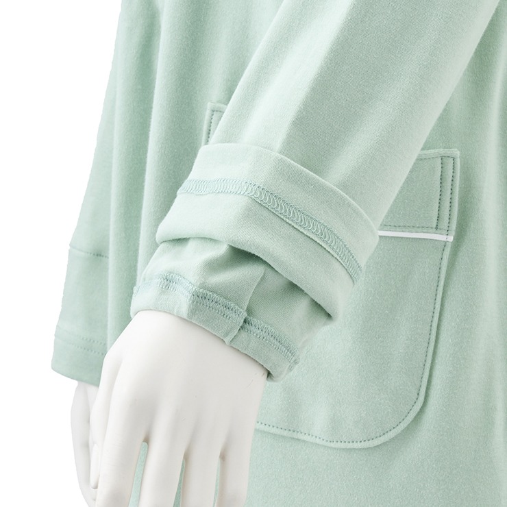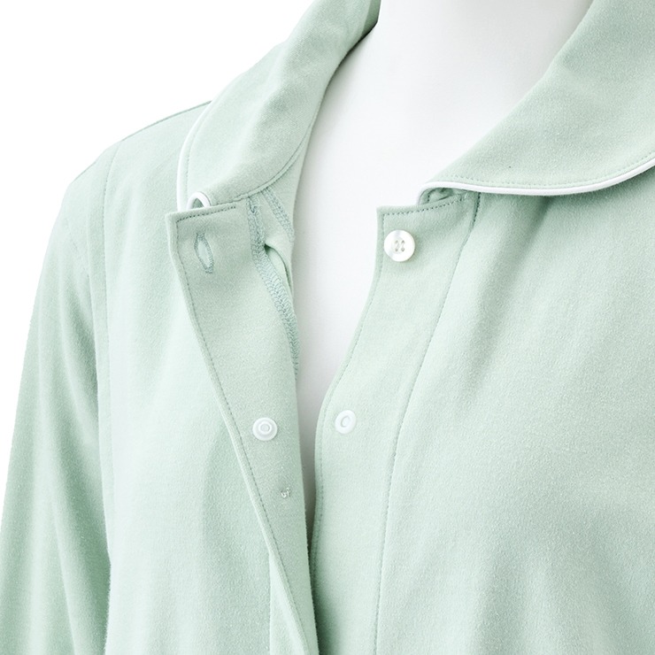 カラーはグレー・グリーン・ネイビーの三色展開で、シャツタイプのパジャマです。