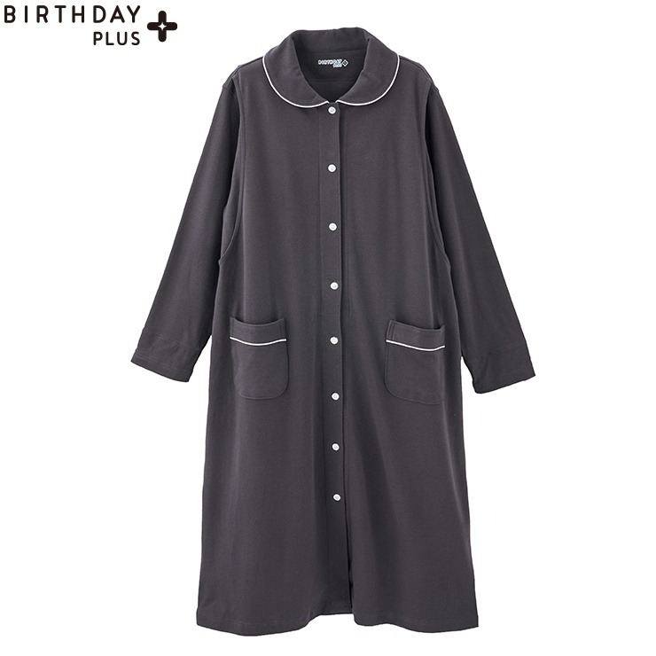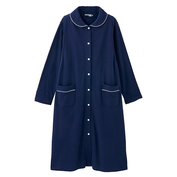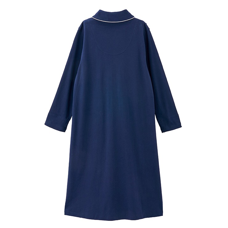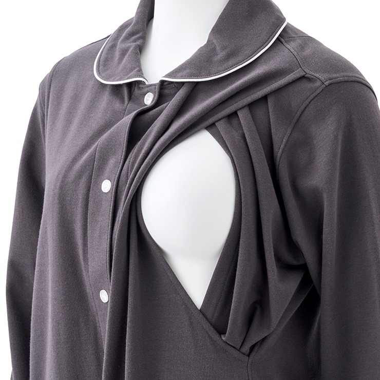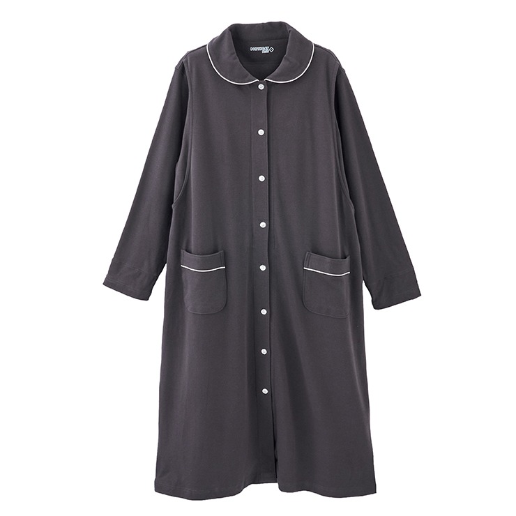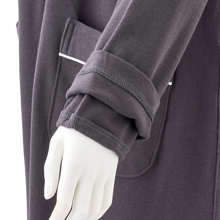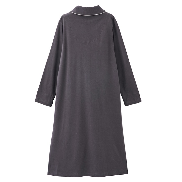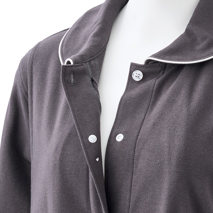 カラーはチャコールとネイビーの二色展開で、ワンピースタイプのパジャマです。