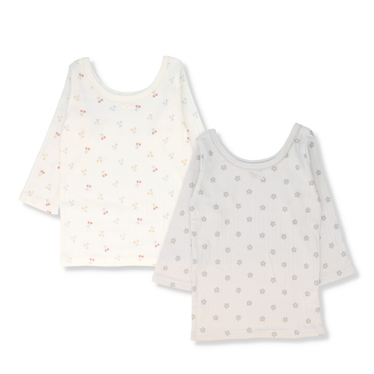 さくらんぼ・デイジー柄の2枚組肌着。