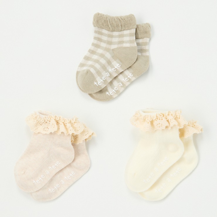 豪華なレースがが特徴でコーディネートしやすいカラーリングで、幅広いスタイルにマッチするショートクルー丈ソックス。