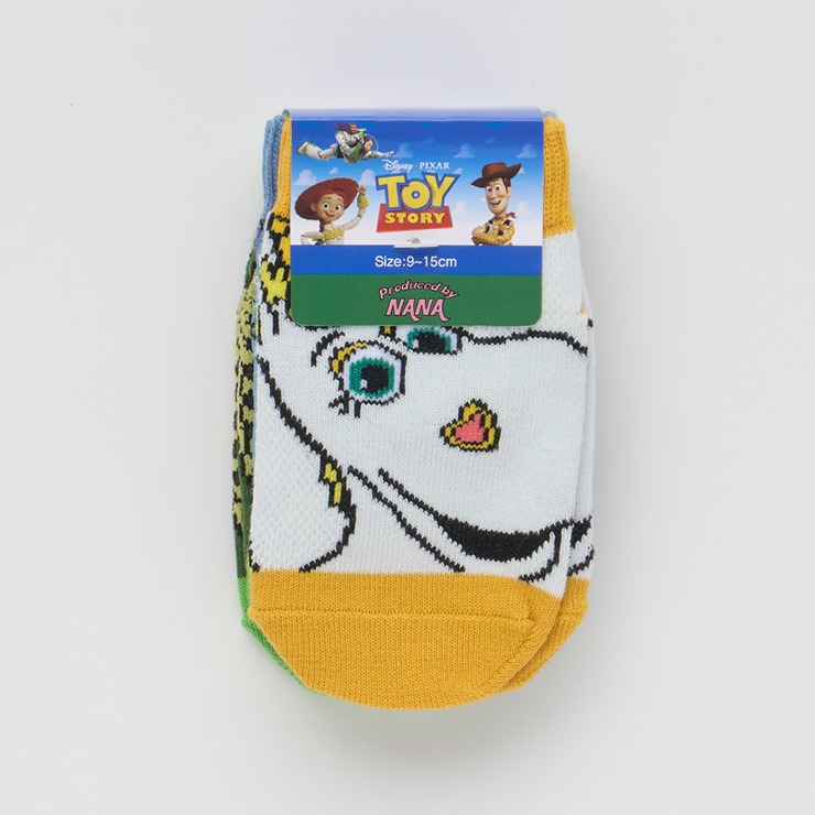 トイストーリーのトリクシー、お豆、バターカップの3柄がアソートされた、甲メッシュがポイントのソックスです。