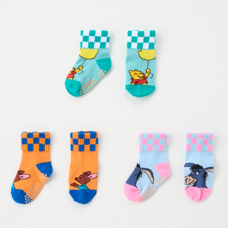 「プーさん」と友達の「ルー」「イーヨー」3柄がアソートされた、