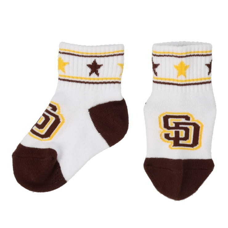 「ロサンゼルス・ドジャース」と「ニューヨーク・ヤンキース」と「サンディエゴ・パドレス」のチームロゴと、可愛らしい星でデザインされています♪ 足底にはフローリングでも滑りにくくなる滑り止め付きです。