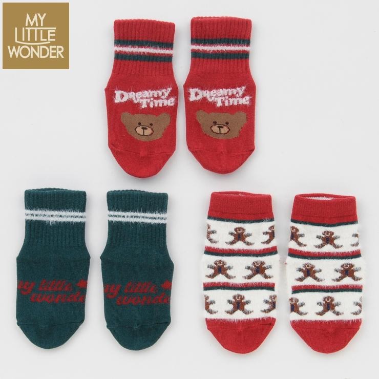 ベビー3足組クルーソックス(9~15cm・MY LITTLE WONDER)