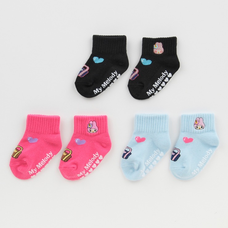 ベビー クルー丈ソックス3足組(9-15cm・マイメロディ)