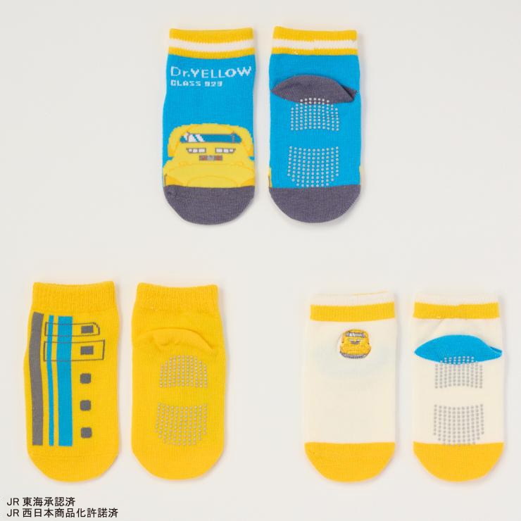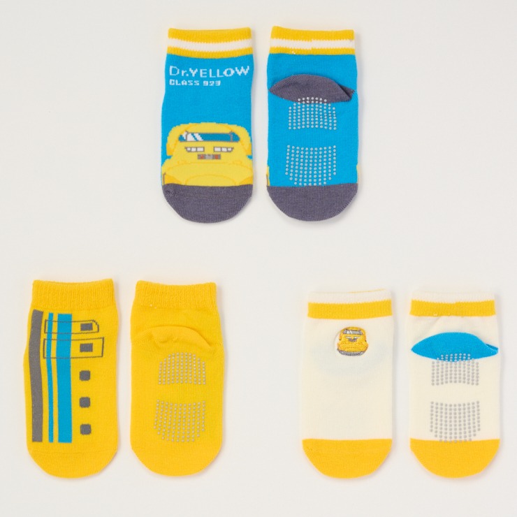 ベビー 3足組ショートクルーソックス(9~15cm ドクターイエロー)