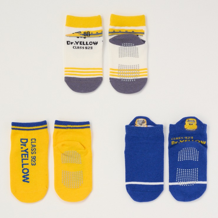 ベビー 3足組ショートクルーソックス(9~15cm ドクターイエロー)