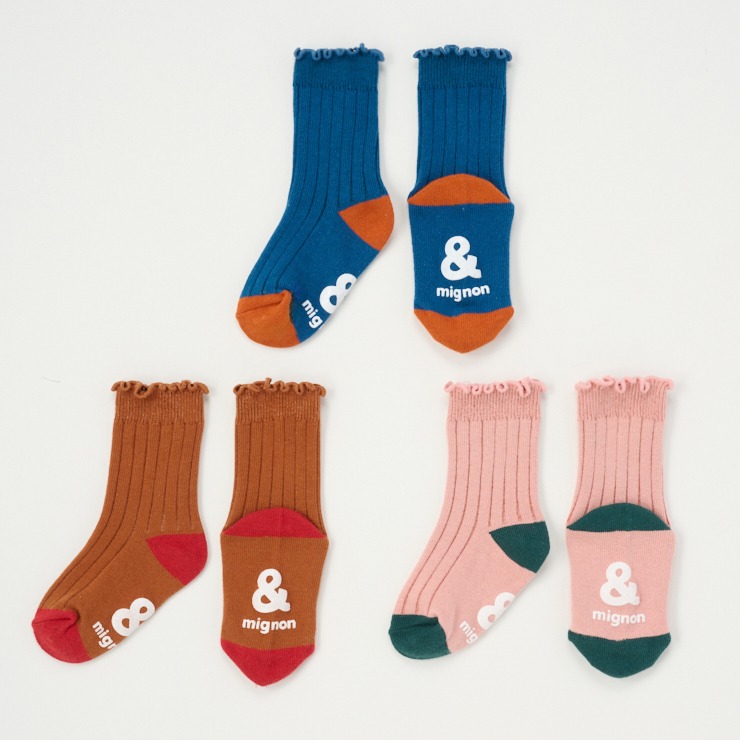 ベビー 3足組クルーソックス(9~15cm &mignon)