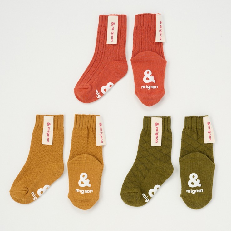 ベビー 3足組クルーソックス(9~15cm &mignon)