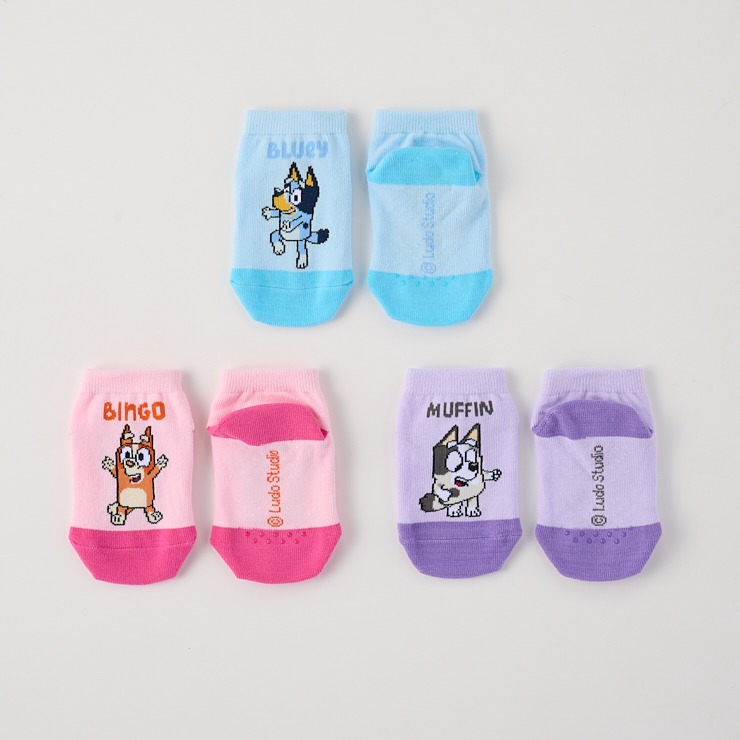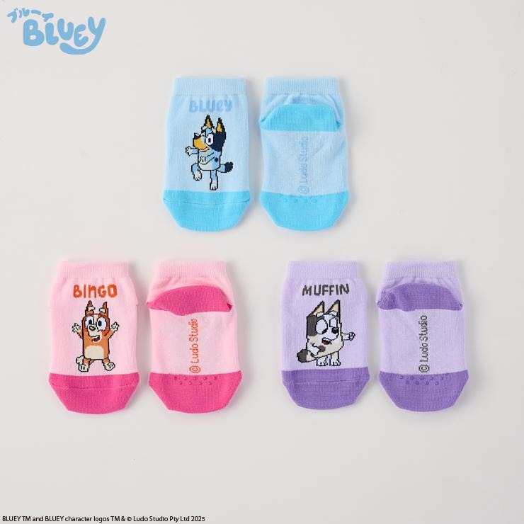 ブルーイ、ビンゴ、マフィンがデザインされた3足組です!