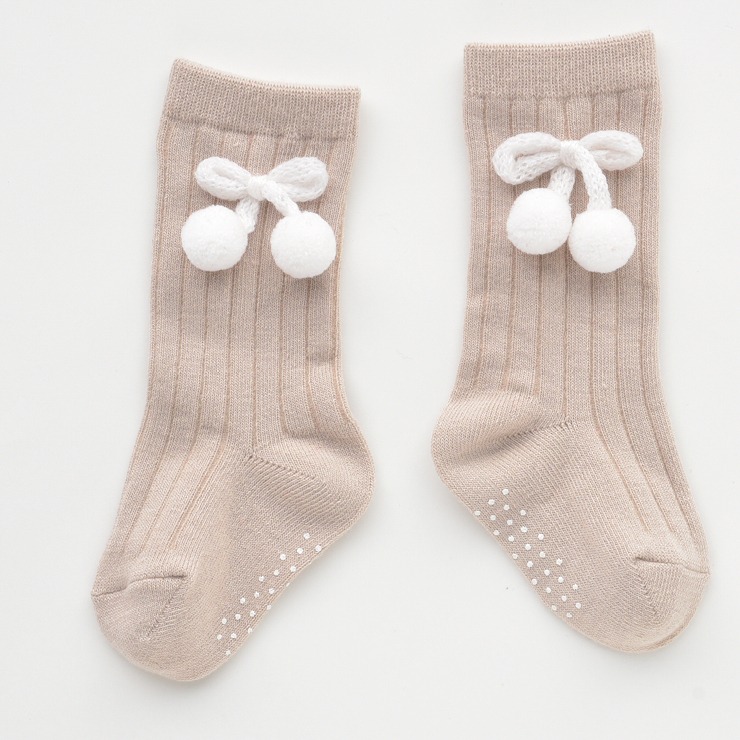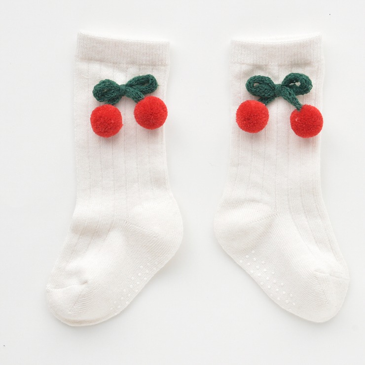 シンプルなリブソックスにチェリーリボンが付いたキュートなデザインです♪
