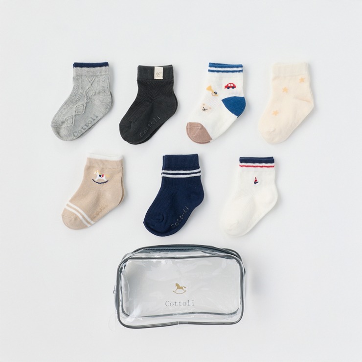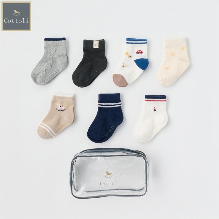 7足組ショートクルーソックス(9~15cm・Cottoli)