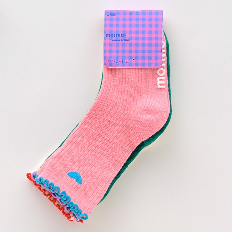 ベビー 3足組クルーソックス(12~15cm moimoi)