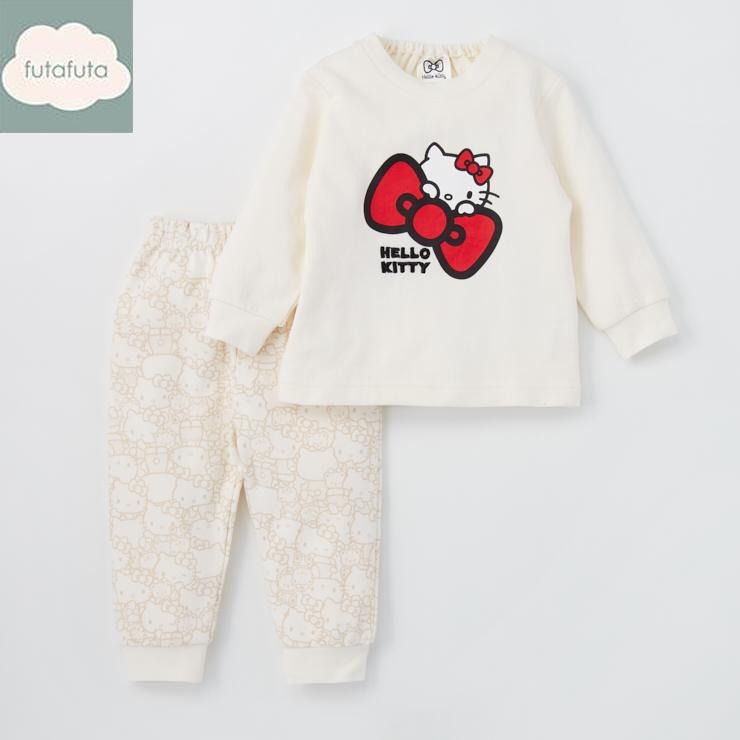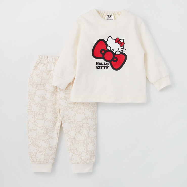 「ハローキティ」と大きなリボンのアップリケデザインになっています。