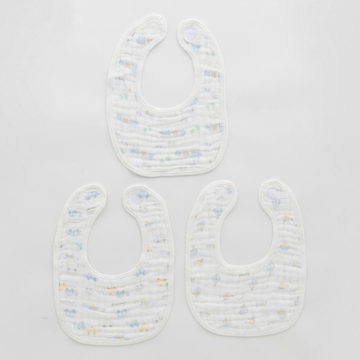 6層にガーゼ生地を重ねて作った素材のスタイ3枚セットです。