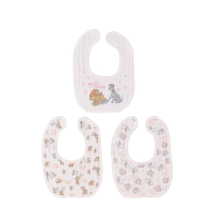 「ディズニーキャラクターお話MIX柄」のよだれかけ3枚組です。
