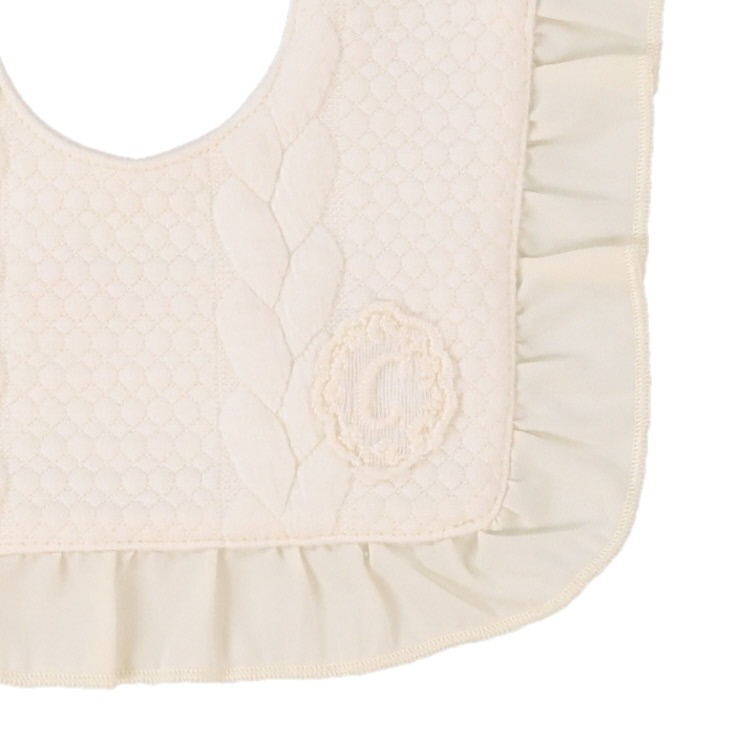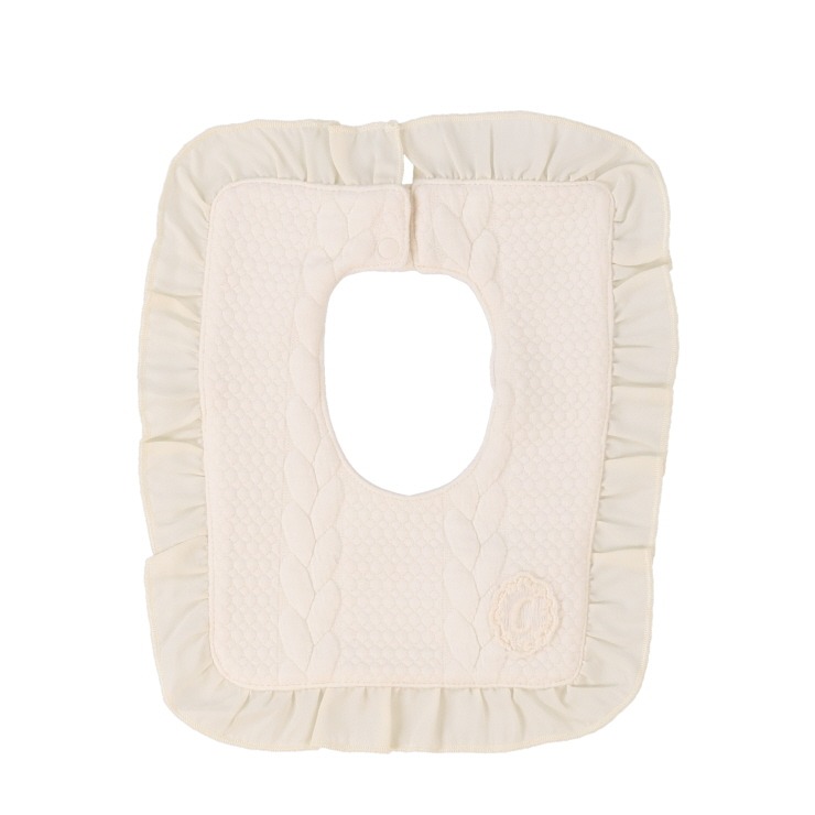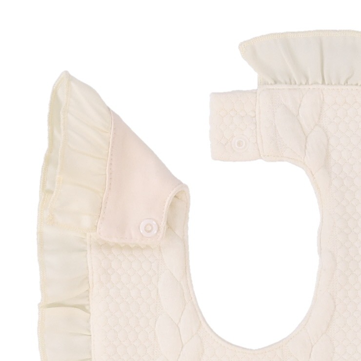 フリルが愛らしい、ケーブル柄ふくれジャガード素材のスタイ。上品なケーブル柄が、ベビーのコーディネートに華を添えます。デリケートな赤ちゃんの肌に優しくフィット♪おめかししたい特別な日にもぴったり。赤ちゃんの可愛らしさをより一層引き立てます。ギフトにもおすすめ♪