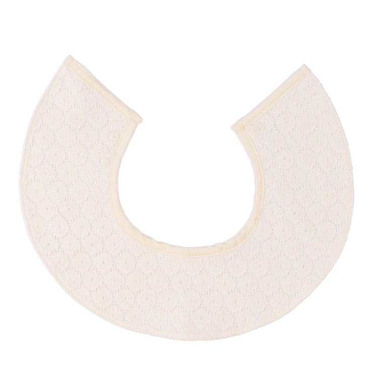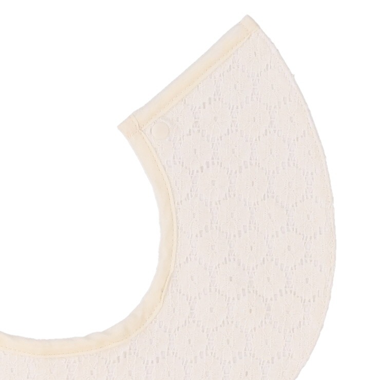 繊細なレースジャガード生地が、まるでお洋服のようなおしゃれなスタイ。やわらかな天竺素材をベースにしているため、赤ちゃんのデリケートな肌にも安心です。吸水性も抜群で、普段使いからお宮参りやお食い初めなどの特別な日まで大活躍。出産祝いにもおすすめです。上品なデザインで、いつものコーディネートがワンランクアップします。
