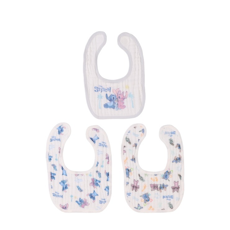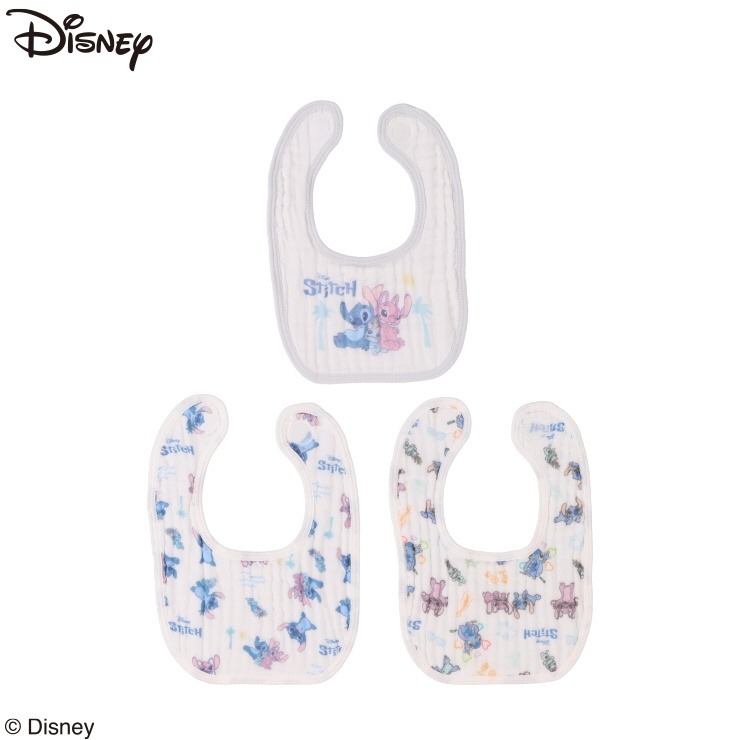 「ディズニーキャラクタースティッチ柄」のよだれかけ3枚組です。
