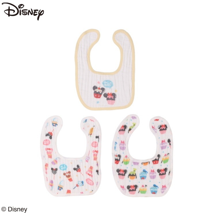 「ディズニーお菓子柄」のよだれかけ3枚組です。