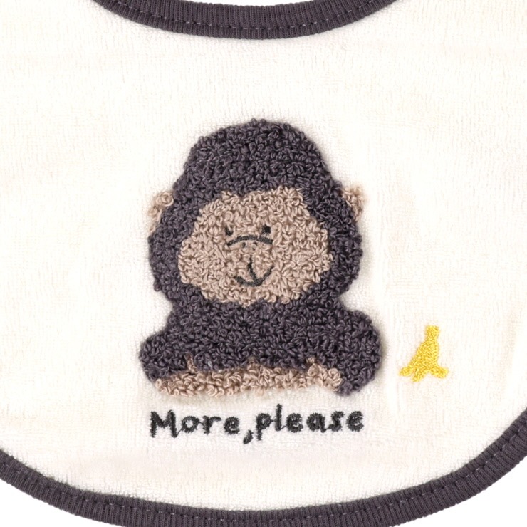 ゴリラさんの立体的なサガラ刺繍入り。