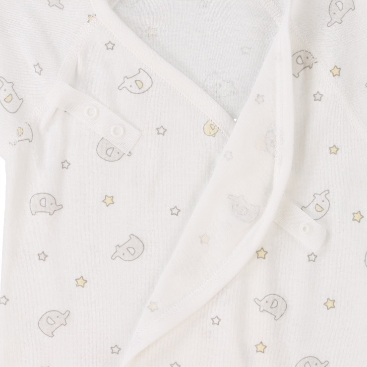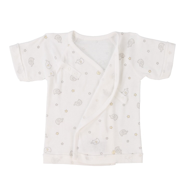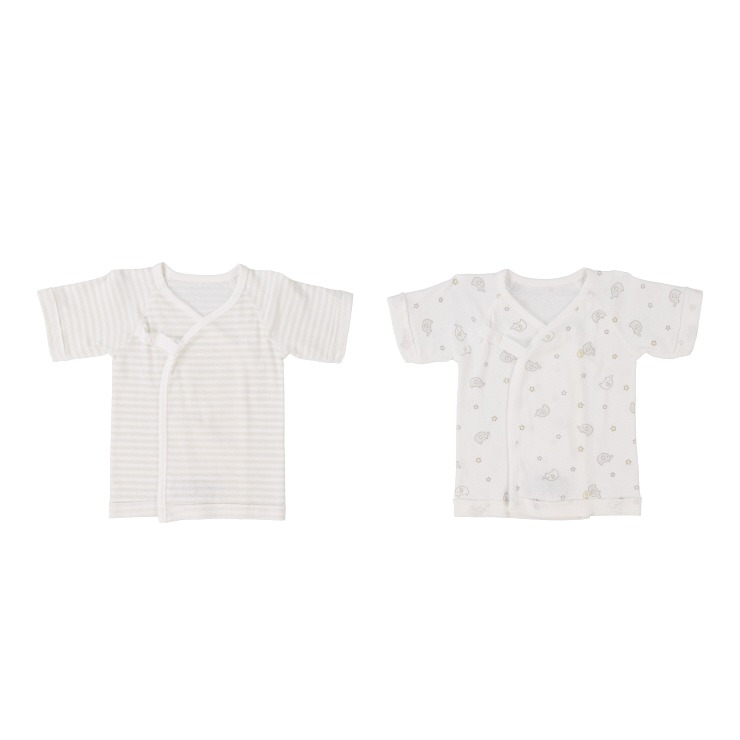 ゾウとひよこ柄がかわいいデザイン・シンプルなボーダー柄の短肌着2枚組です。