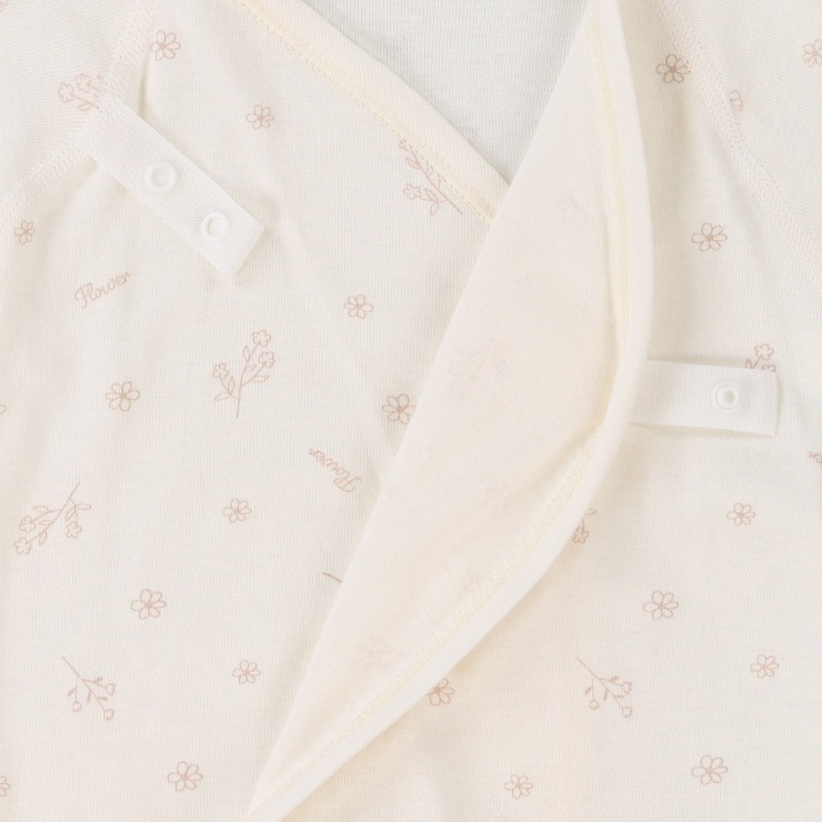 くすみカラーのテレコ生地がかわいいデザイン、線描きのお花柄がシンプルでおしゃれなデザインの2枚組 短肌着です。