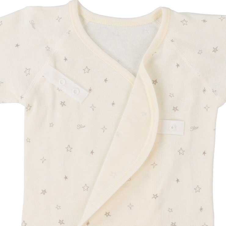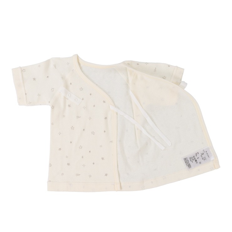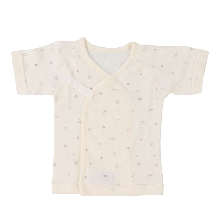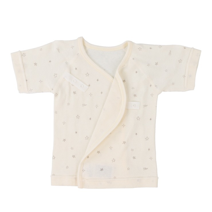 くすみカラーのテレコ生地がかわいいデザイン、線描きの星柄がシンプルでおしゃれなデザインの2枚組 短肌着です。