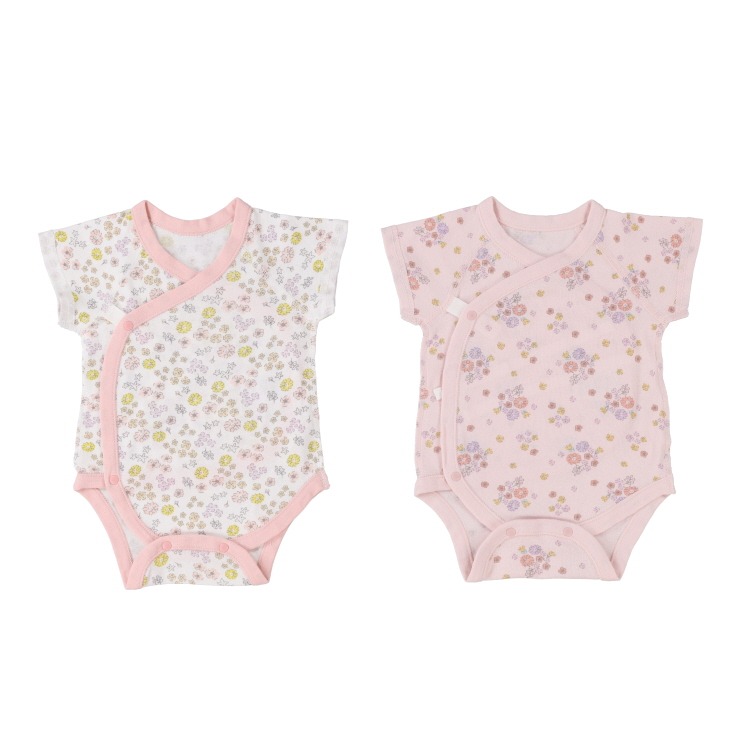 新生児 2枚組半袖打ち合わせロンパス (50~60・60~70cm)
