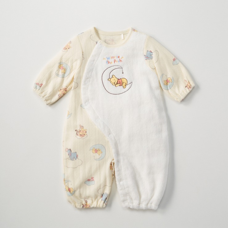 前を大きく開けられるスナップ仕様で、着脱やおむつ替えも快適に行えます。