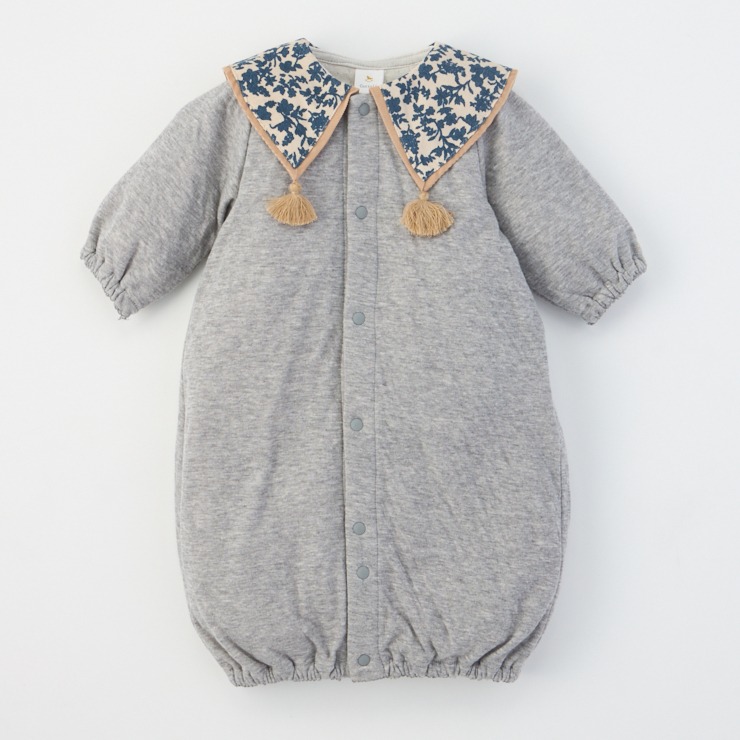 花柄のシャツコール素材を使用した三角の衿デザインにタッセル使いがアクセントになっています。