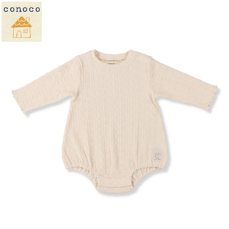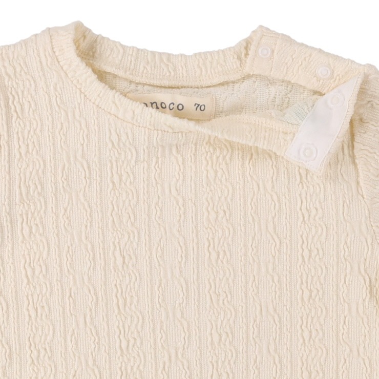 表情豊かなアラン柄が魅力のカットソーロンパス。ふんわり柔らかな肌触りでデリケートな赤ちゃんの肌にも安心です。股下ボタンでおむつ替えもスムーズ。お部屋着からおでかけまで毎日の着こなしを上品に彩ります。