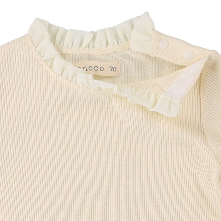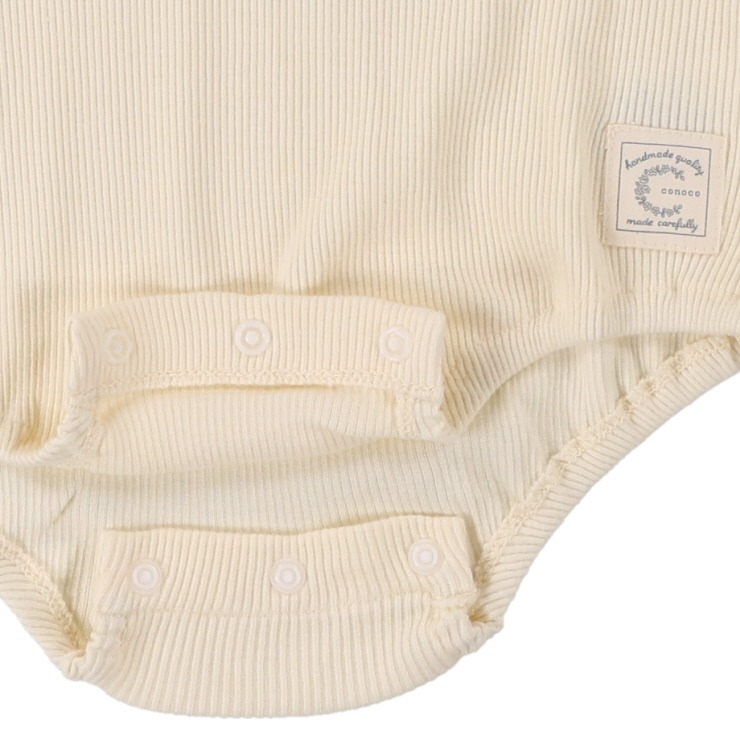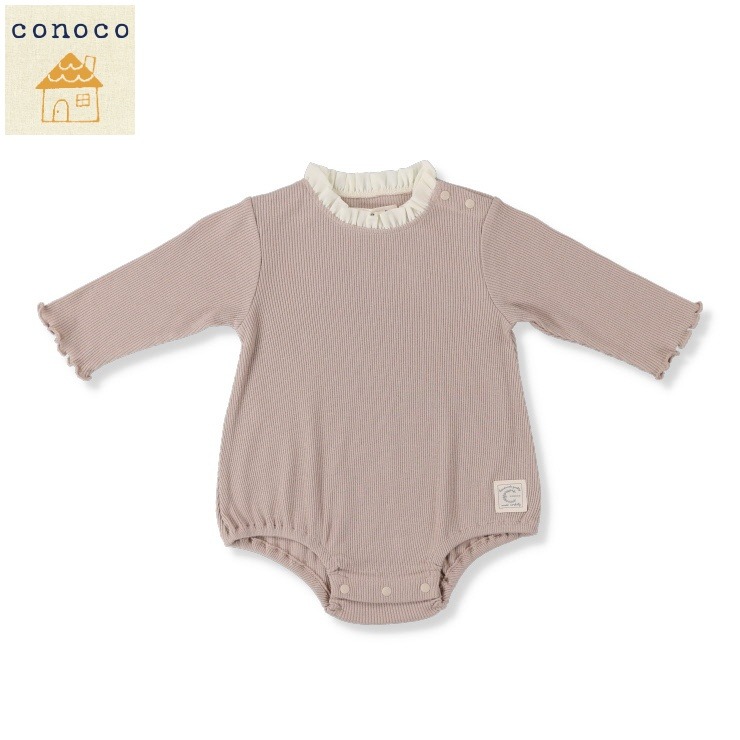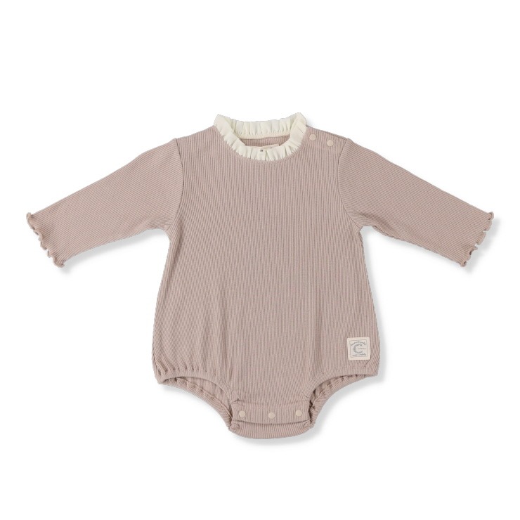 デリケートな赤ちゃんに優しい肌触り♪ 柔らかなテレコ素材に襟元のシフォンフリルが可憐なロンパスです。お着替えも簡単な股下ボタンでママも安心。快適に、そして最高に可愛らしく彩る大切な一枚を。