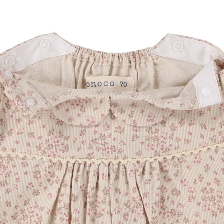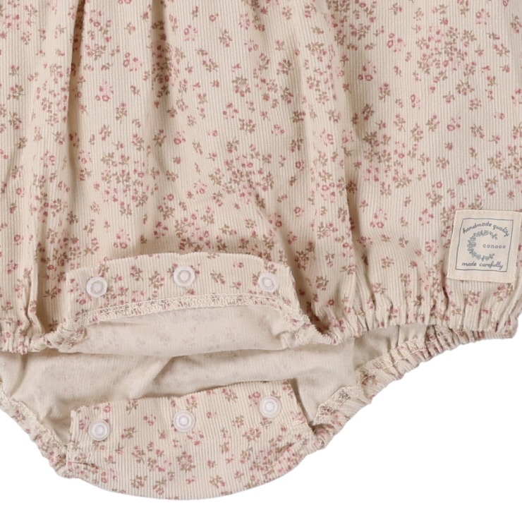 秋冬のおしゃれに!ちいさな小花柄が愛らしいコーデュロイロンパス。柔らかな肌触りで、デリケートな赤ちゃんの肌にも優しくフィットします。襟元のフリルやふっくらとしたシルエットが、お子様のかわいらしさを一層引き立てる一枚です。