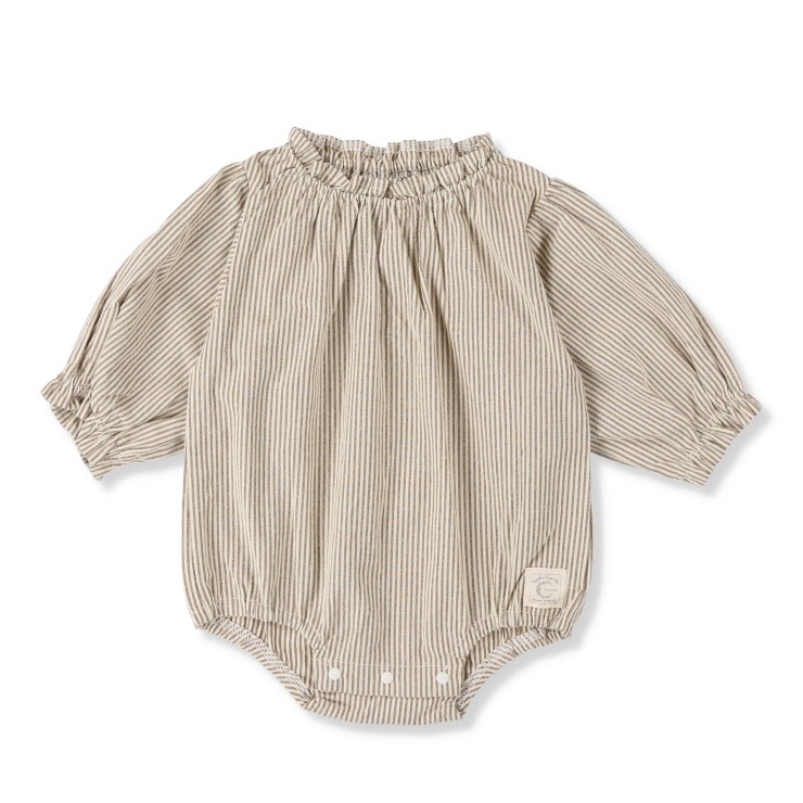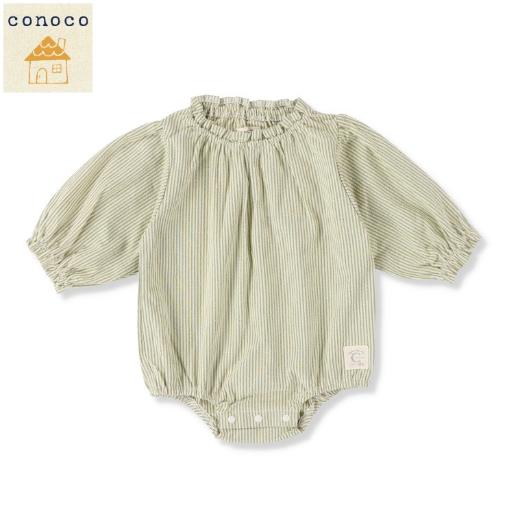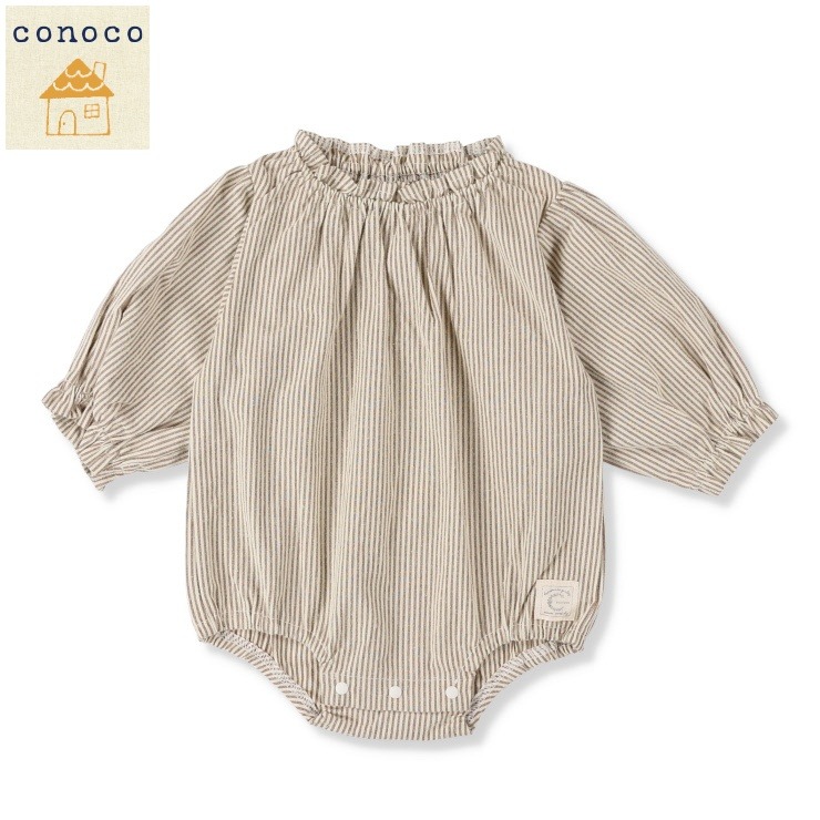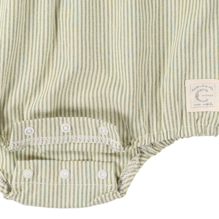 さわやかなピンストライプが魅力のロンパス。先染め素材でさらりとした風合いです。ふんわりとしたシルエットで、動き回るお子様も快適。股下ボタンでおむつ替えもスムーズに、ママもベビーも笑顔になる一枚です。