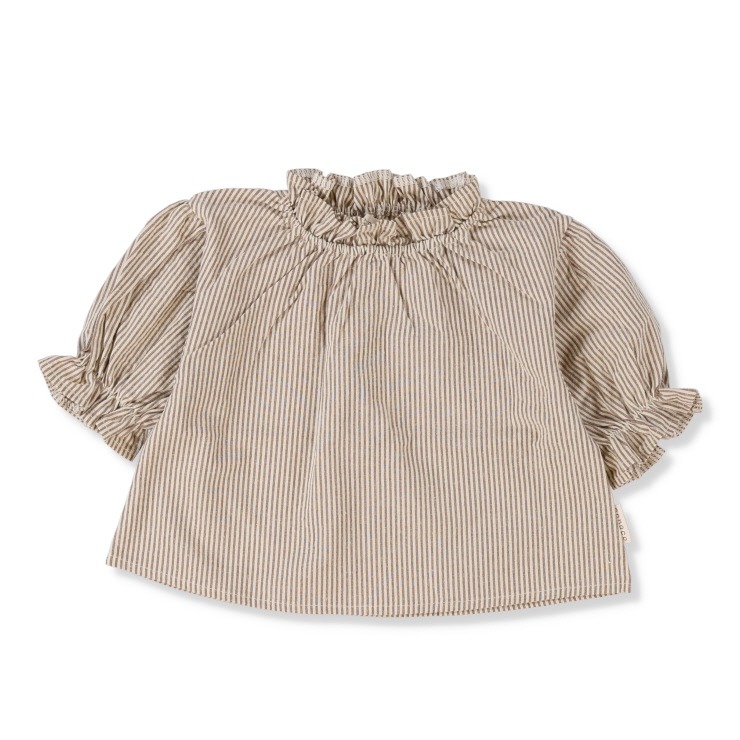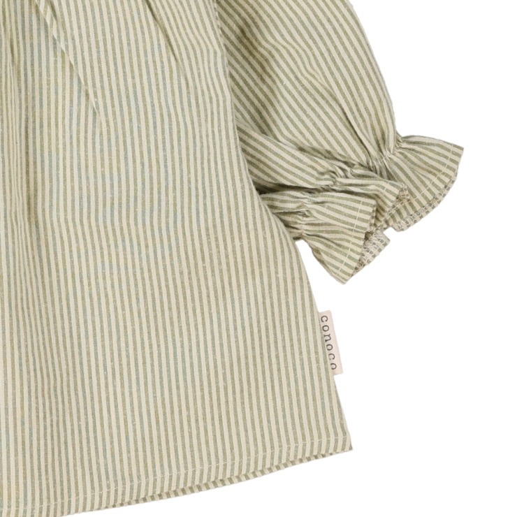 爽やかな先染めストライプ柄のスモッグブラウス。ふんわりとしたシルエットが愛らしく、衿と袖口はゴム仕様でお着替えもスムーズです。ソフトな風合いで快適な着心地。一枚で着るのはもちろん、羽織ものやジャンパースカートとの重ね着で、秋冬のお洒落をお楽しみいただけます。